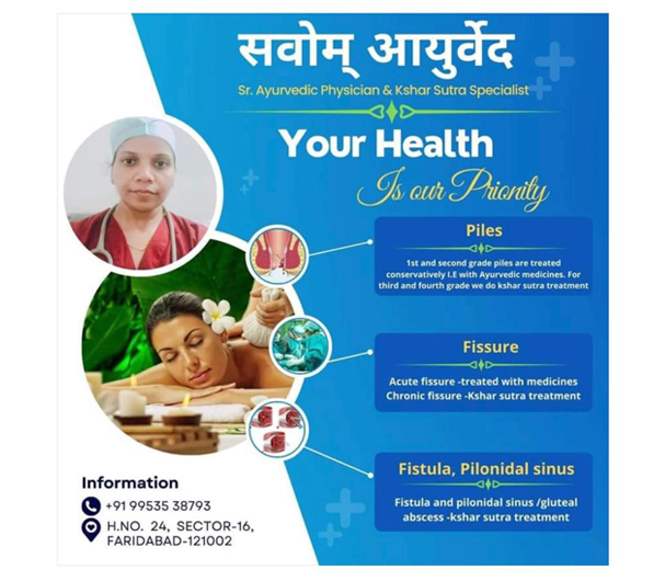 Established in the year 2010, SavOm Ayurvedic Clinic in Faridabad Sector 16, Faridabad, Haryana is a top player in the category Ayurvedic Doctors in the Faridabad, Haryana. This well-known establishment acts as a one-stop destination servicing customers both local and from other parts of Faridabad, Delhi. Over the course of its journey, this business has established a firm foothold in it’s industry. The belief that customer satisfaction is as important as their products and services, have helped this establishment garner a vast base of customers.